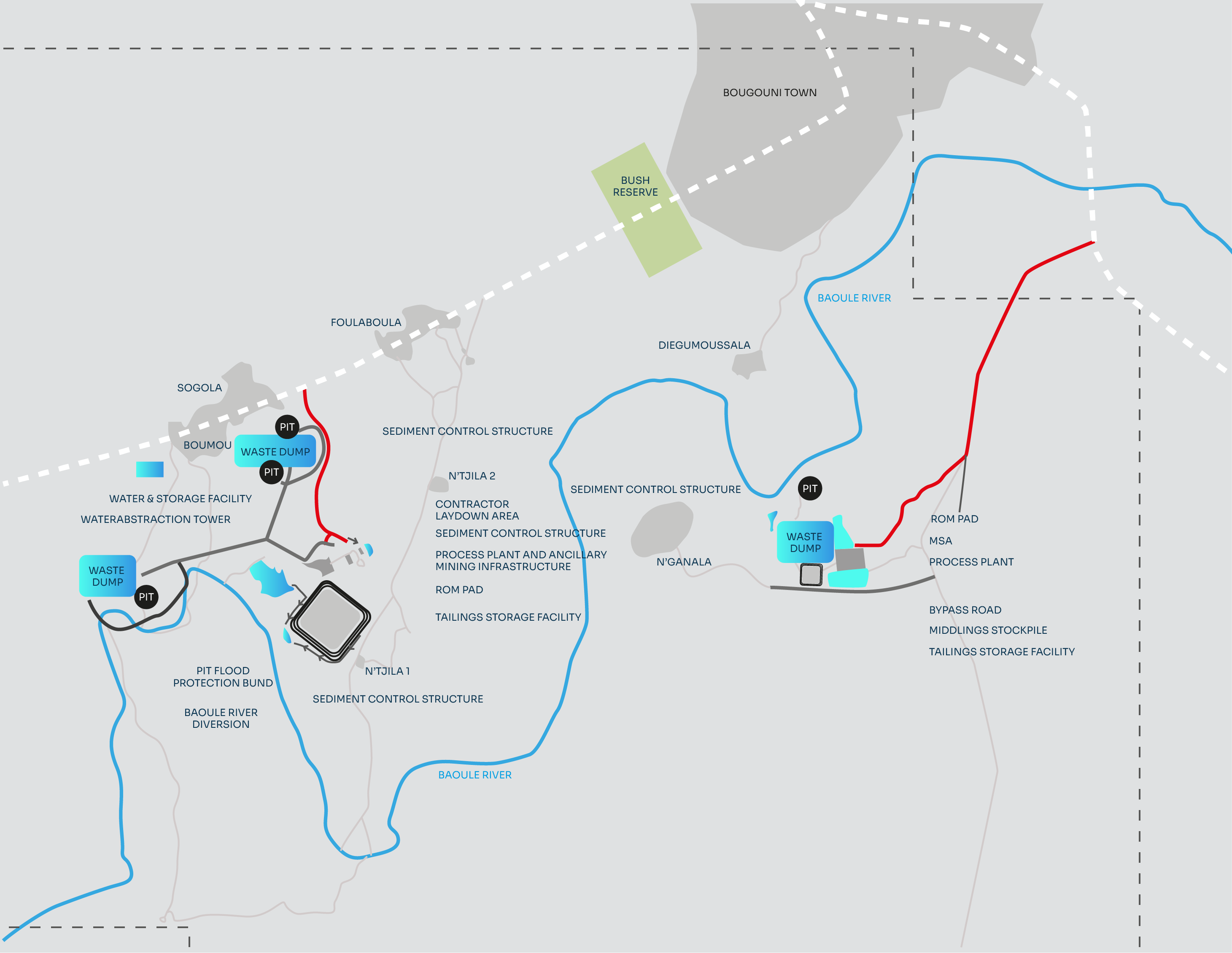 The Bougouni Lithium Project covers an area of 350km2 in the world-class Birimian terrain of West Africa and is located approximately 180km south of Mali’s capital Bamako